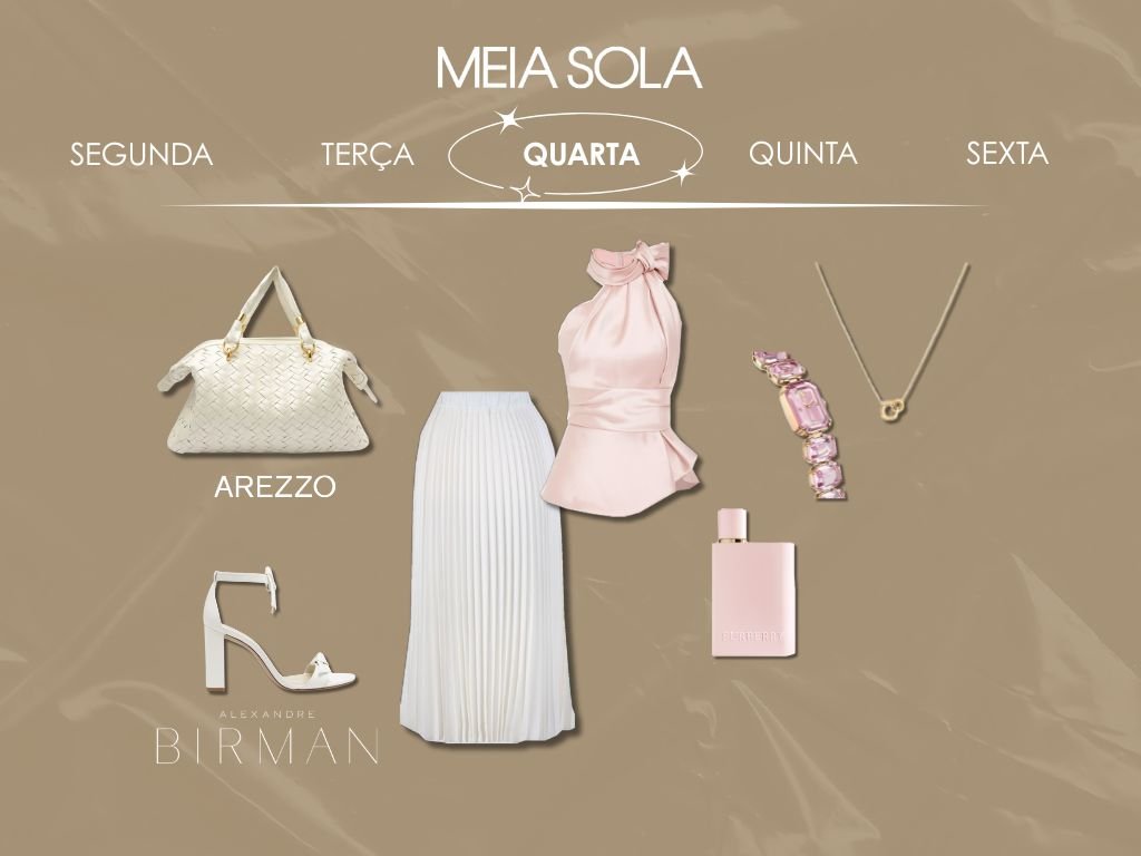 Dia internacional do rosa para trazer aquela leveza no meio da semana. E se você ama o rosa, experimente combinar com tons claros para um look super harmônico. Complete com um salto médio off white.