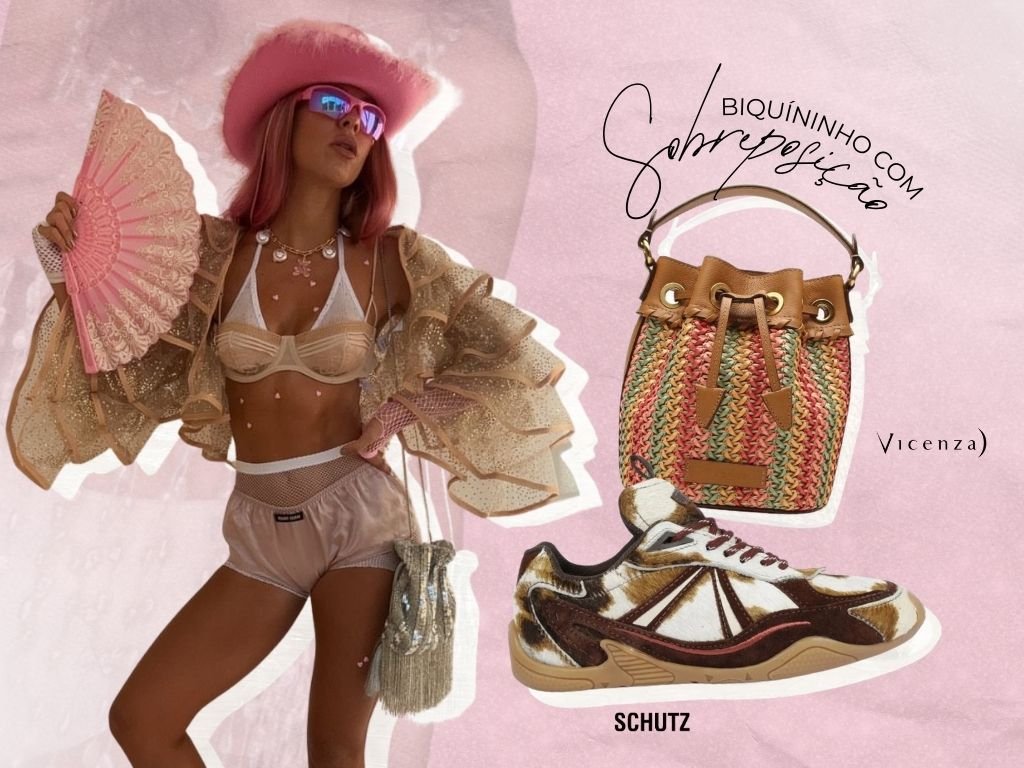 O biquíni é praticamente o uniforme quase oficial do Carnaval, e neste ano, ele ganha um update fashion com a tendência das sobreposições. Use com short ou saia e finalize com tênis pra um toque cool e confortável.