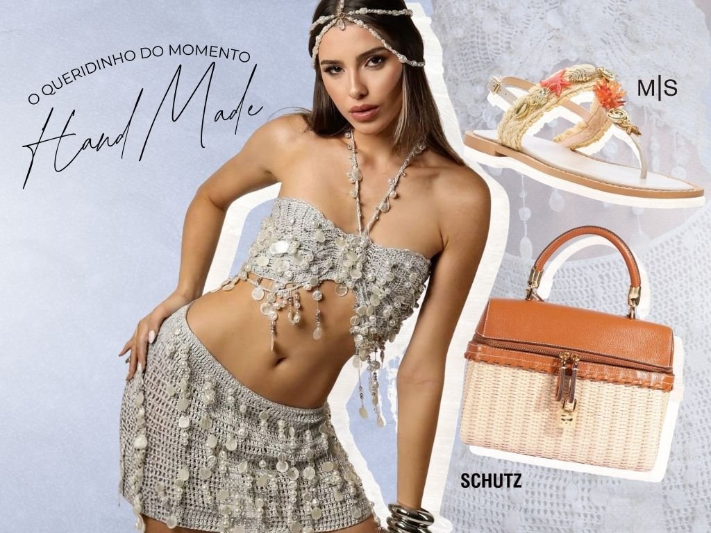 O crochê segue firme como uma das tendências mais fortes do Carnaval 2026. Aposte em peças com detalhes em ráfia ou materiais naturais, e combine com uma rasteira e fique ainda mais linda.