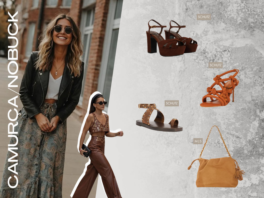 Sim, eles voltaram e agora mais elegantes do que nunca! A Camurça e o Nobuck chegaram dominando botas, saltos e bolsas, trazendo o ar boho chic moderno. E para acertar em cheio, foca nos tons marrons e vinhos, que será um sucesso!