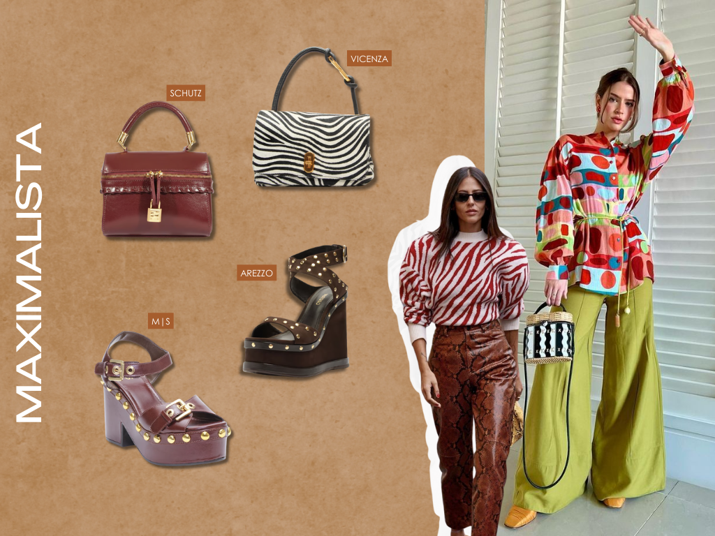 Amamos a ousadia e a criatividade do maximalismo dos anos 80. Estampas geométricas e psicodélicas ficam perfeitas com um poderoso salto plataforma e abuse dos acessórios exuberantes para ficar ainda mais maxi!