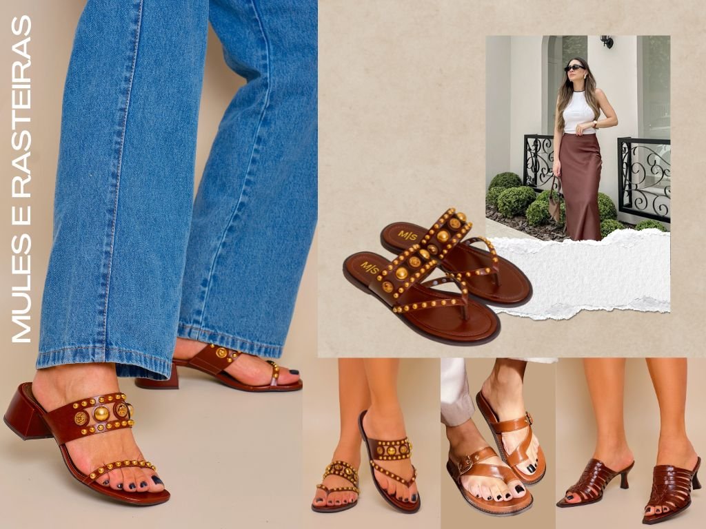 Na correria do dia a dia, a praticidade vale ouro. E quando ela vem atrelada a muita beleza e conforto? Vem conferir as mules e rasteiras dessa nova coleção e se encantar com a gente. Fique atenta aos detalhes que vão fazer você brilhar em todos os momentos do dia!