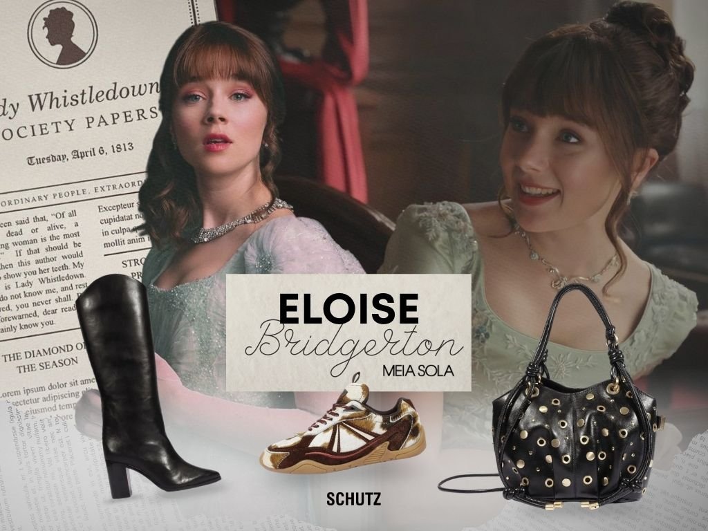Curiosa, sagaz e nada tradicional, Eloise é a Bridgerton que questiona tudo. “Regras? Prefiro quebrá-las, mas com Schutz nos pés.”